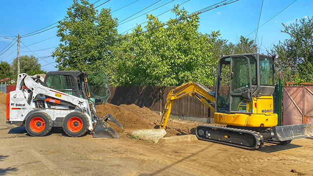 Executam lucrari de sapaturi santuri, bransamente, sapaturi pentru retea de canalizare, retea de apa sau gaz, sapaturi fundatii si beciuri, rigole sau taluzari